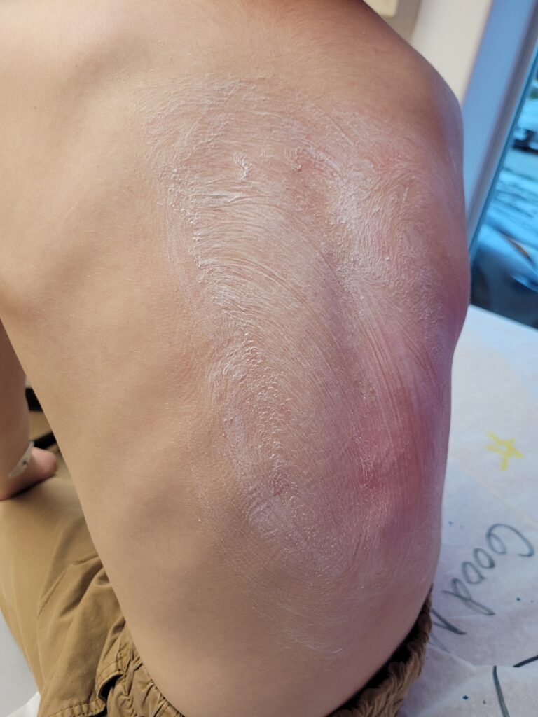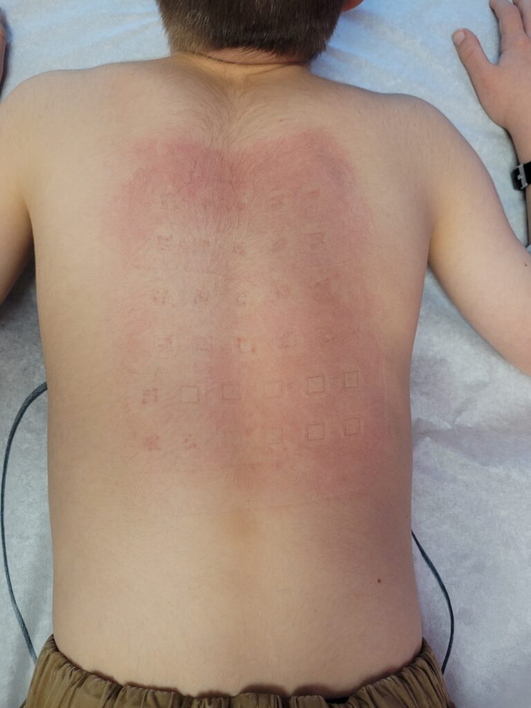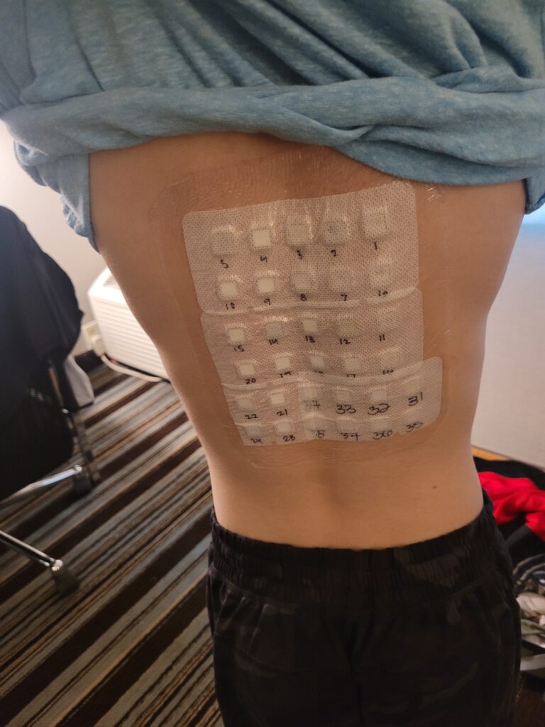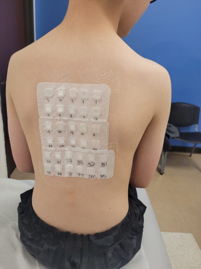 At this appointment, they removed the patch test and then measured the reactions on his back. Had the reaction been bigger, they would have changed the plan they’d made based on the other testing. Luckily, his reactions were standard for what they’d found in his other tests. They wipe off his back after they measure it, but also apply a cream to help calm the itching.